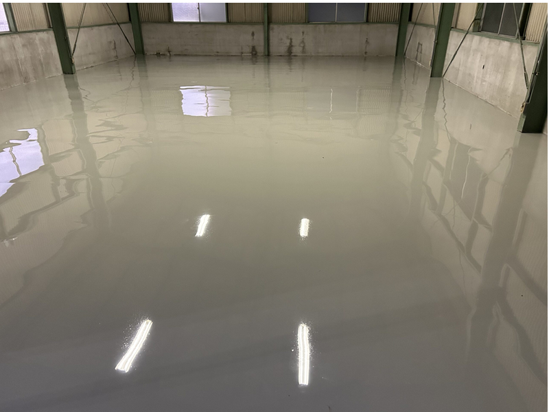 当社が手掛ける床塗装は、見た目を美しく整えるだけでなく、日々の衝撃や摩耗から床面をしっかり守る役割も果たしています。お客様のご要望や施設の用途に応じて最適な加工方法を選定し、長く安心して使える床環境をご提供します。 施工では、樹脂をローラーや刷毛、コテで丁寧に塗布するほか、専用機械を用いた研磨やはつり作業も行い、高い耐久性と仕上がりの美しさを実現します。作業期間は最短1日、通常は2日に分けて効率的に行っています。