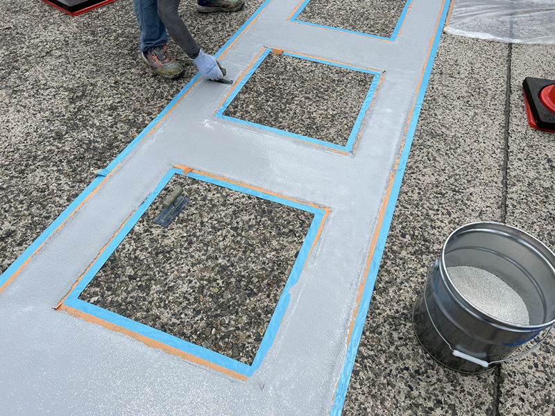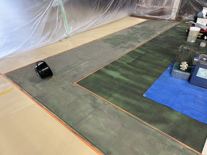 当社が手掛ける床塗装は、見た目を美しく整えるだけでなく、日々の衝撃や摩耗から床面をしっかり守る役割も果たしています。お客様のご要望や施設の用途に応じて最適な加工方法を選定し、長く安心して使える床環境をご提供します。 施工では、樹脂をローラーや刷毛、コテで丁寧に塗布するほか、専用機械を用いた研磨やはつり作業も行い、高い耐久性と仕上がりの美しさを実現します。作業期間は最短1日、通常は2日に分けて効率的に行っています。